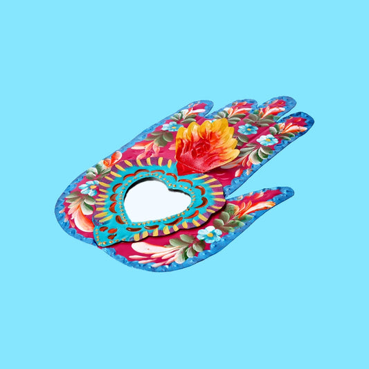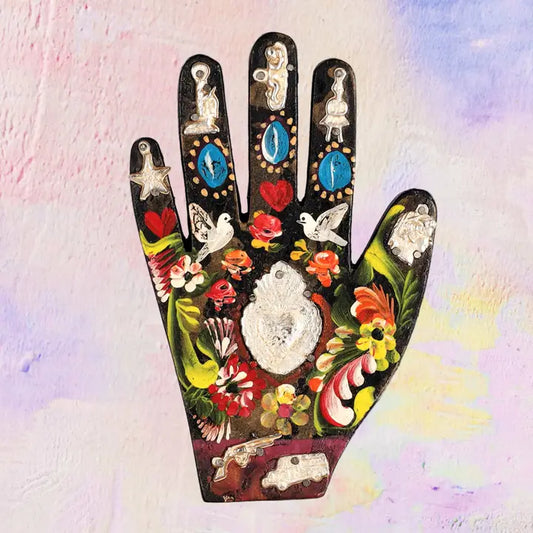 Pink Pampas, Mano artigianale messicana in legno dipinta con ex voto