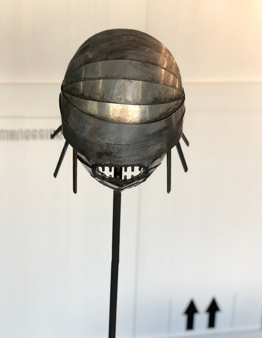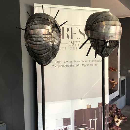 Paolo Fiorellini, maschera "Pesce", Ecce Homo, alluminio e tela di iuta, 30x180