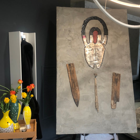 Paolo Fiorellini, quadro "Il Mago", Ecce Homo, alluminio, cemento, legno e smalto, 100x170adro "Latta Africana su