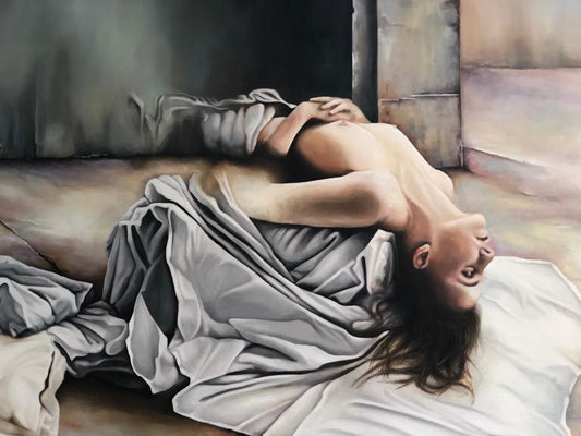 Dorta Raffaella, quadro "Donna con Lenzuola", olio su tela, 100x70