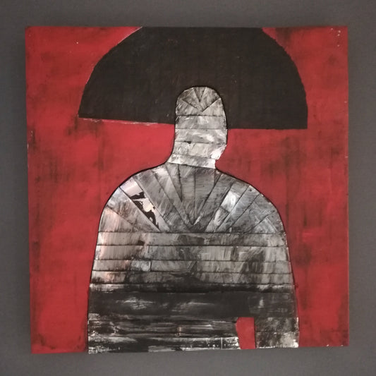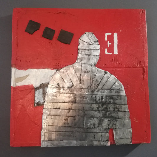 Paolo Fiorellini, quadro "Mummia di alluminio", Ecce Homo, alluminio e smalto, 50x50