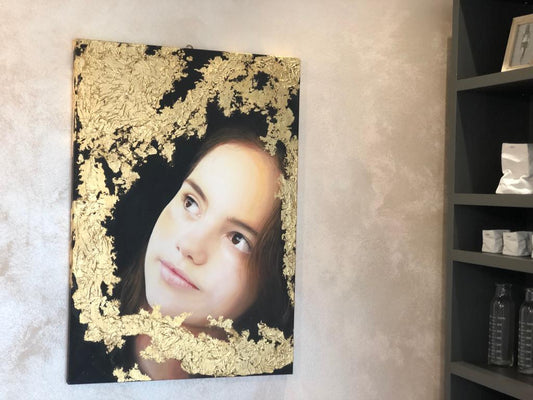 Dorta Raffaella, quadro "Il Sogno di Matilde", olio su tela e inserti in foglia d'oro, 70x100