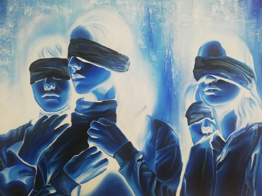 Dorta Raffaella, quadro "Donne Bendate Blu", olio su tela, 80x60
