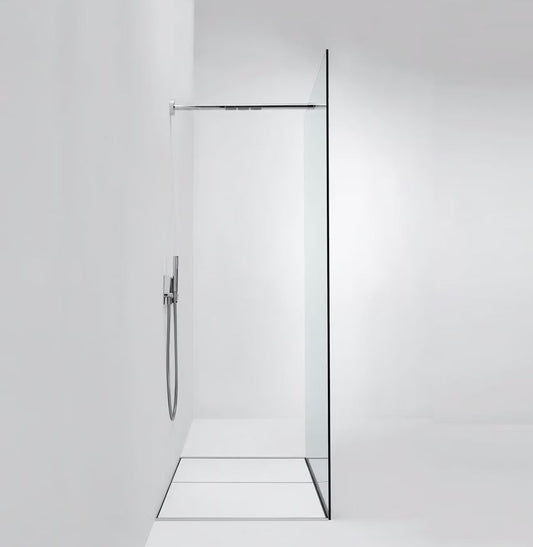 Agape, Doccia Walk in Flat D sp 10 mm con soffioni lineari, 1000x1618 mm, vetro trasparente e profili cromati