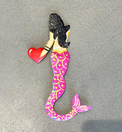 Pink Pampas, Sirena fucsia con cuore da parete artigianale messicana in latta