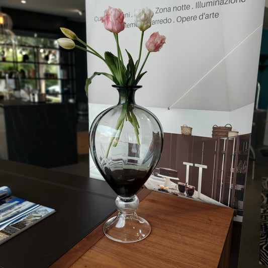 Enzo De Gasperi, vaso anfora S, in vetro pesca, h 38 x d20 cm