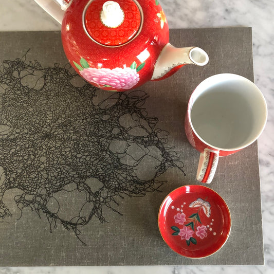Fiorirà un Giardino, set 4 tovagliette effetto macramè in abaca colore lino, 33 x 48 cm