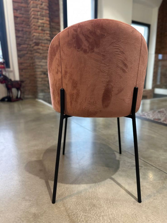 Enzo De Gasperi, set 4 sedie Puzzle velluto rosa e gambe metallo nero, h80x49x55