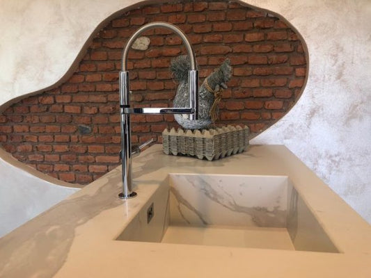Valdesign, cucina Logica L40 in nobilitato bianco neve e top gres Laminam bianco statuario