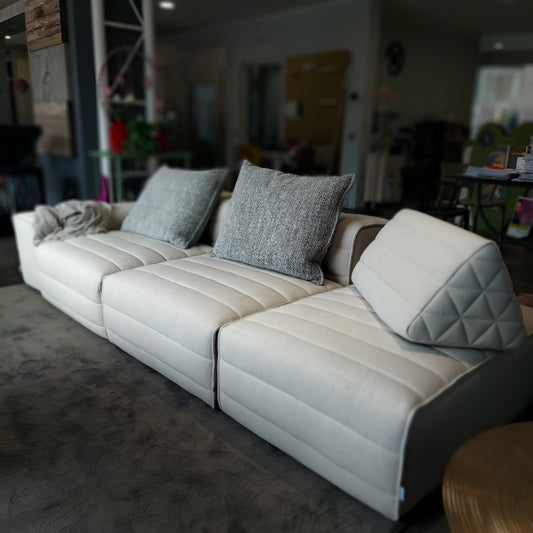 Gervasoni, divano modulare Samet con cuscini, tessuto sand bianco