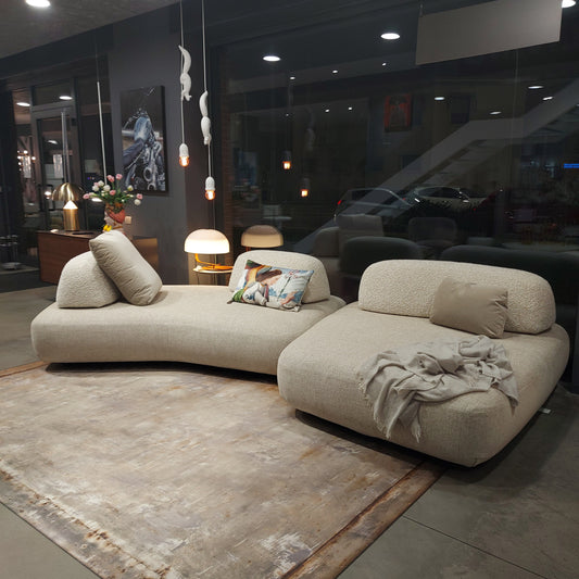 Art Nova, divano Curve tessuto beige con schienali mobili e chaise longue