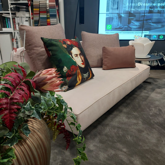 Art Nova, divano Filiph Air da 195x125 cm tecnonabuk rosa con schienali mobili, cuscini e poggiareni