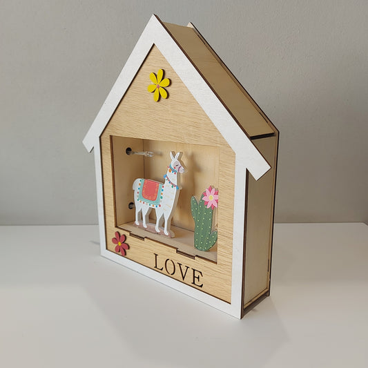 Enzo De Gasperi, casetta/lampada lama love con led, legno, 20x20x5 cm
