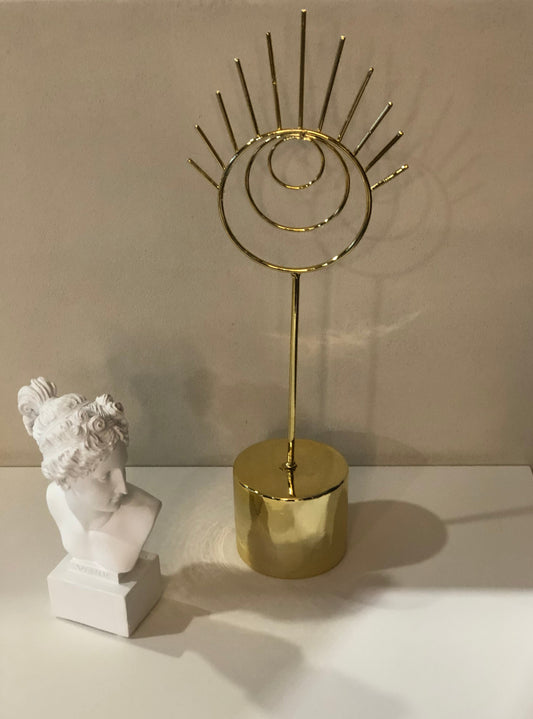 Enzo De Gasperi, scultura decorativa occhio dorato in metallo, h41xd9 cm