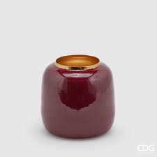 Enzo De Gasperi, portacandela cilindrico bordeaux rigato con base ottone, h13xd9 cm