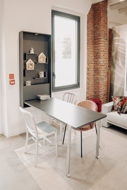 Clei, tavolo consolle e scrivania a muro Wally laccata grigio antracite con schienali magnetici