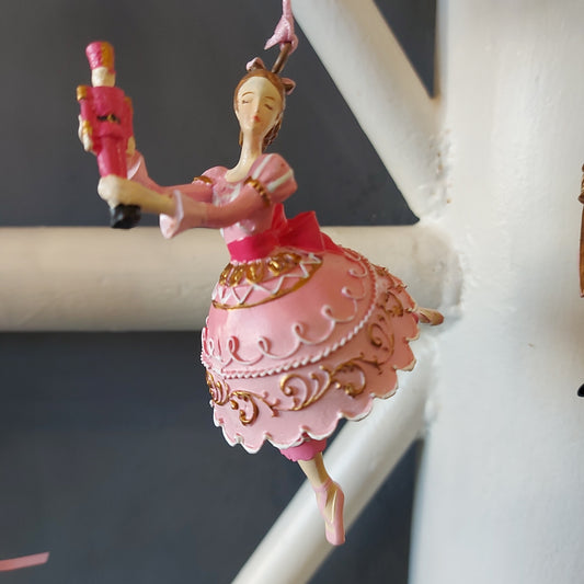 Enzo De Gasperi, set 2 decorazioni soldatino+ballerina rosa, resina, h13 cm