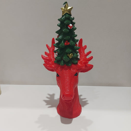 Enzo De Gasperi, candela natalizia renna con pino, h27xd14 cm