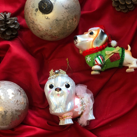 Enzo De Gasperi, cane ballerina decorazioni natalizie in vetro da appendere, h10 cm