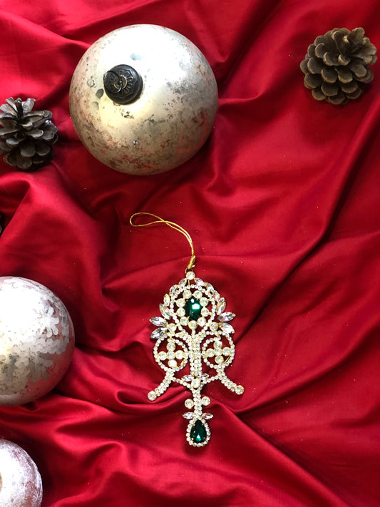Enzo De Gasperi, Decorazione di Natale da appendere con gioiello dorato con pietra verde damasco, h13 cm