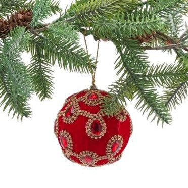 Enzo De Gasperi, Palla Natale gemme e velluto rosso, d10 cm