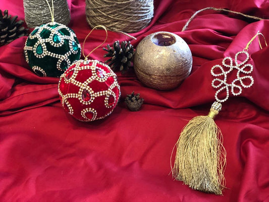 Enzo De Gasperi, Palla Natale gemme e velluto verde, d10 cm
