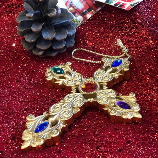 Enzo De Gasperi, croce da appendere oro, resina, h16 cm