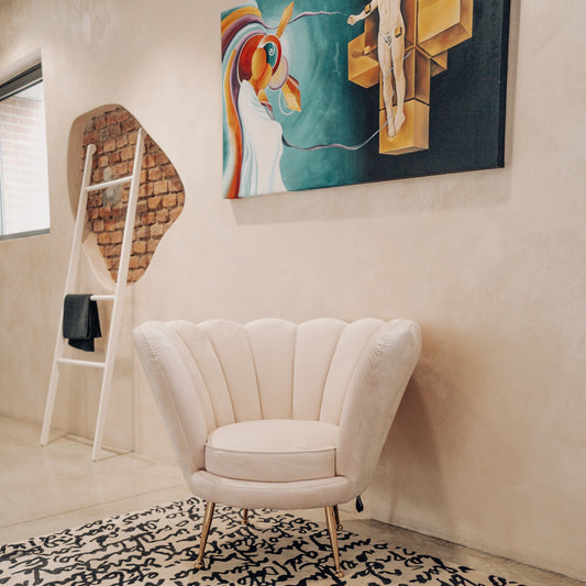 Abhika, poltrona Chloe in velluto rosa con piedini ottone, H79x93x83 cm