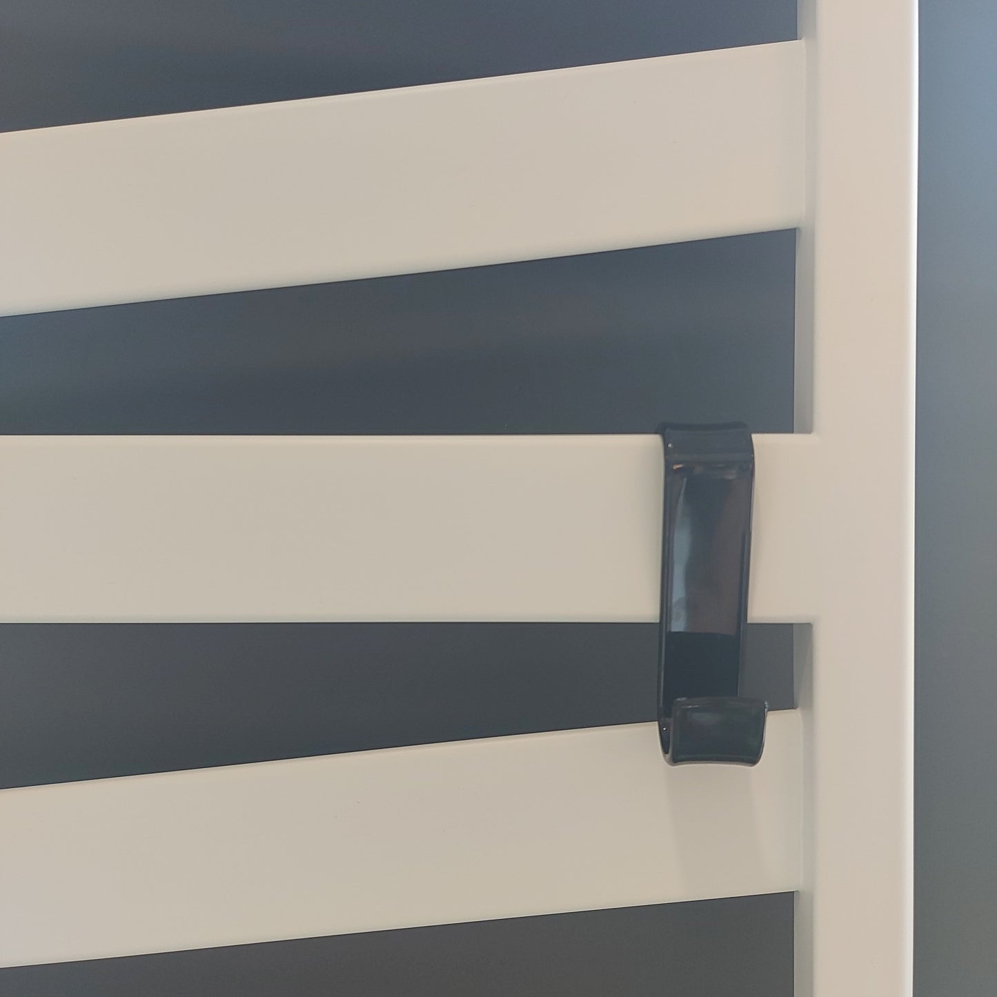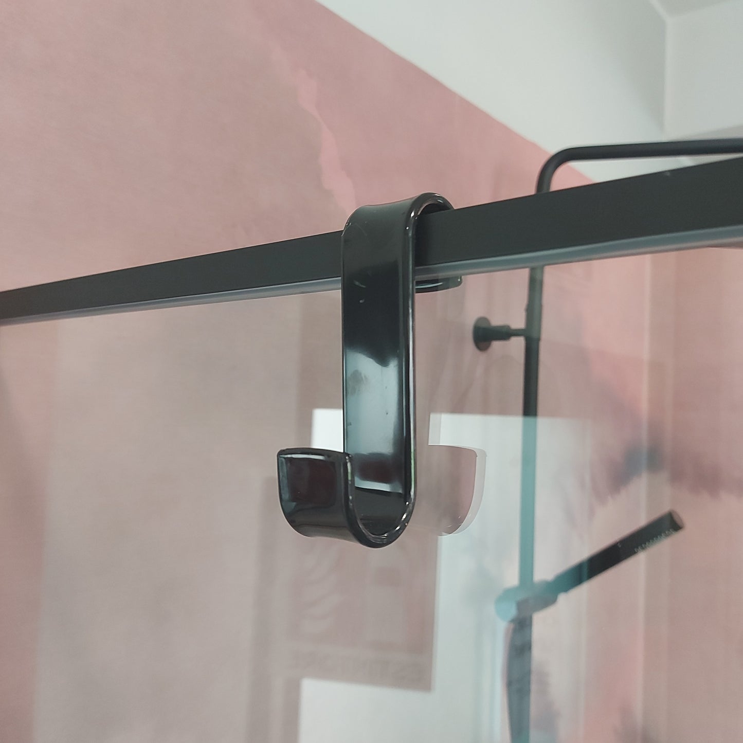 Gancio in abs nero da appendere su box doccia e termoarredi.
