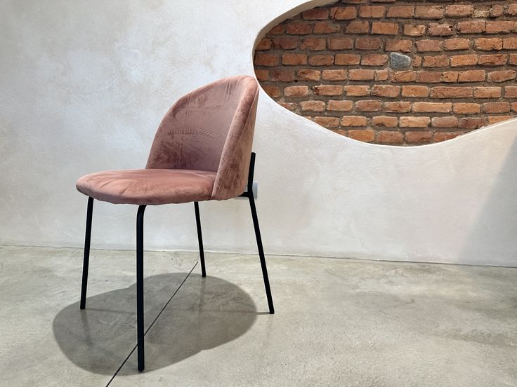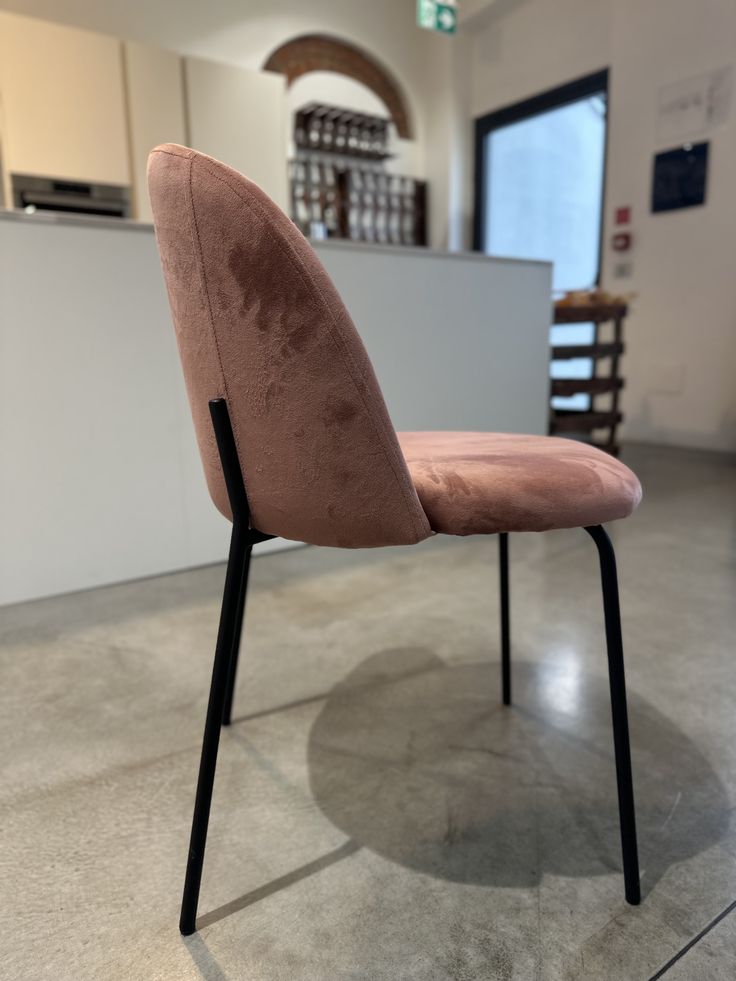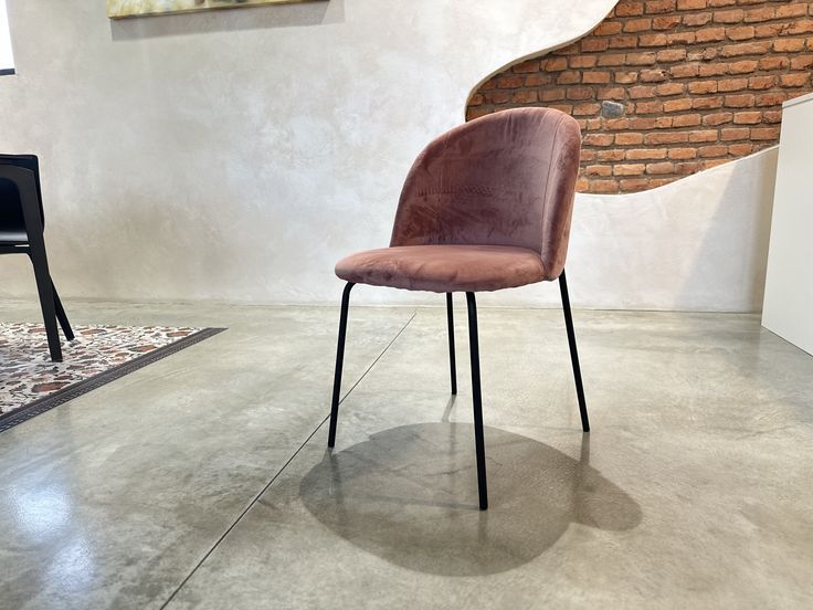 Set 4 sedie in velluto rosa con gambe in metallo nero smontabile. Portata max 110 kg.