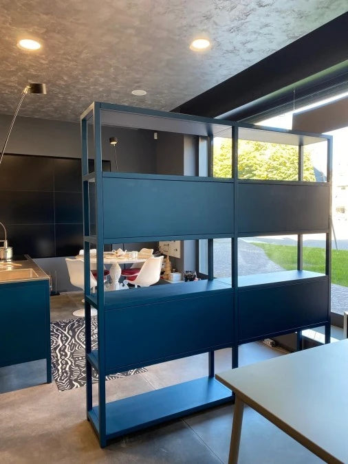 Ogni dettaglio della libreria Frame è stato curato con attenzione, dalla precisione delle linee alla qualità dei materiali utilizzati. Il colore Blu oceano non solo cattura lo sguardo, ma crea anche un'atmosfera rilassante e sofisticata. Questa libreria non è solo un mobile funzionale, ma anche un pezzo di design che arricchisce l'ambiente circostante.