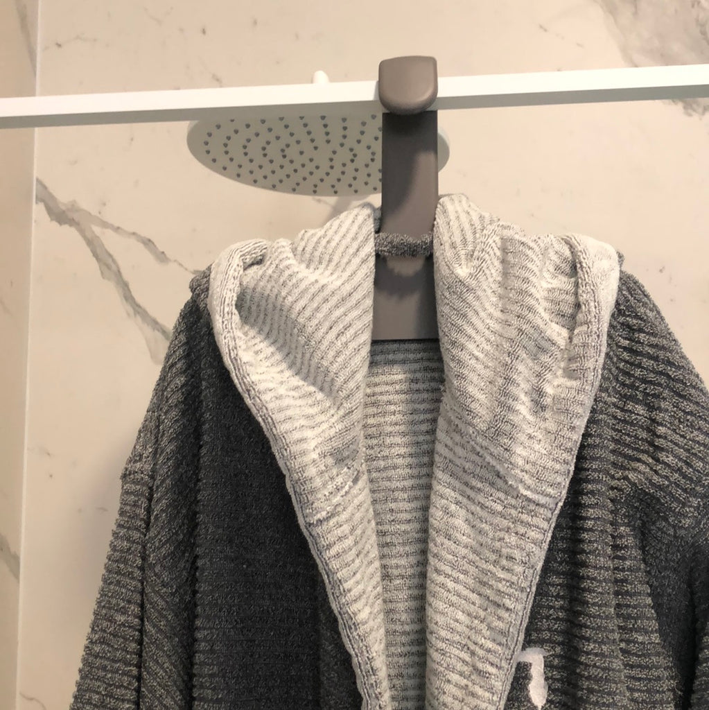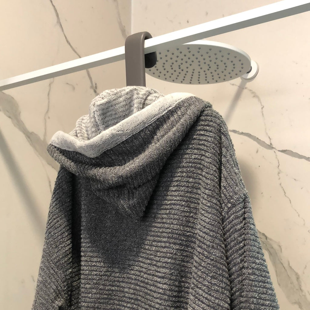 Gruccia monomaterica che può essere appesa al vetro della doccia e all’occasione può diventare un utile aiuto nella pulizia del vetro, grazie alla gommosità del materiale con cui è realizzato.