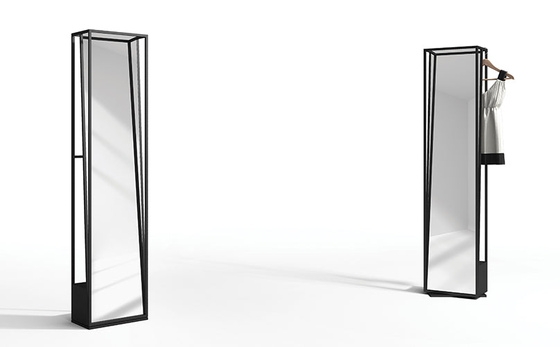 Specchio free-standing, servo muto in tubolare di metallo sezione quadrata, colore antracite.