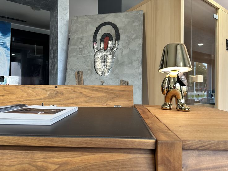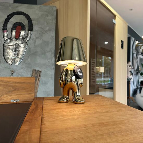 La lampada da tavolo Golden Brothers Tom, disegnata da Stefano Giovannoni, unisce design e funzionalità con eleganza. Realizzata in oro, questa lampada-personaggio emana una luce LED morbida che valorizza le curve fluide della sua silhouette. Dotata di batteria ricaricabile, offre praticità senza fili, mentre l’interruttore touch con dimmer progressivo permette di regolare l’intensità luminosa in modo preciso, creando atmosfere personalizzate per ogni ambiente. Perfetta per arredare con stile la tavola o ogni angolo della casa, Tom rappresenta un oggetto di design capace di animare gli spazi con originalità.