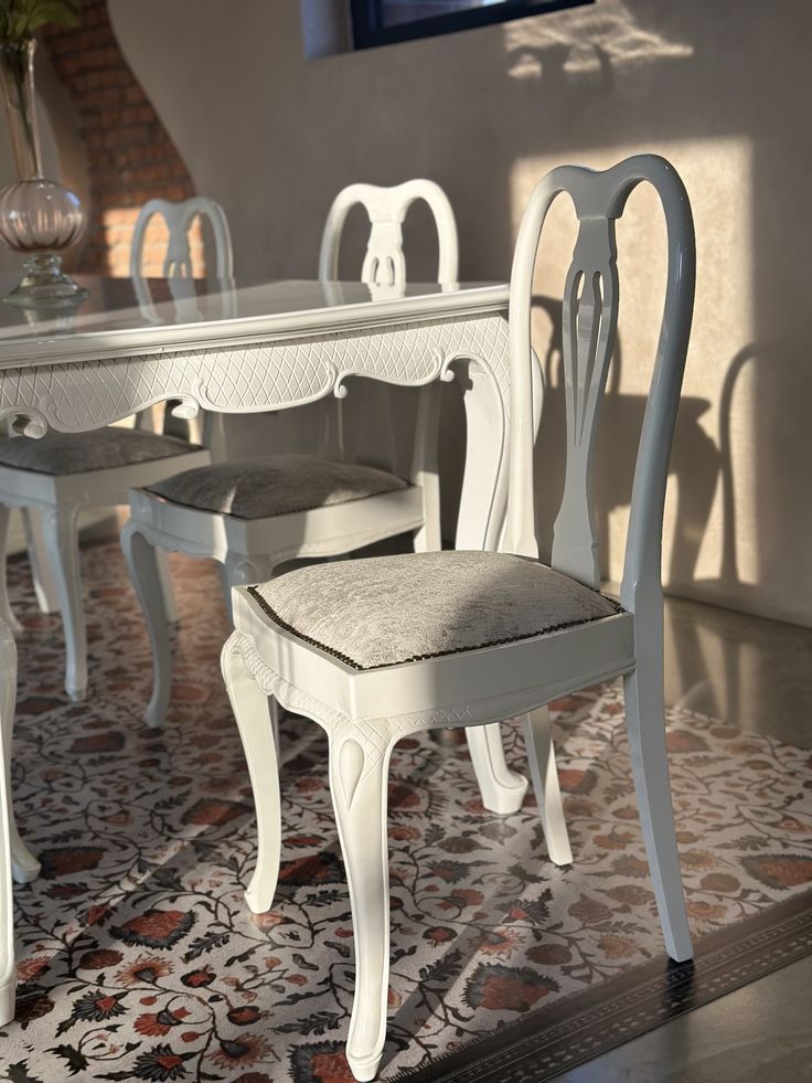 Set tavolo 180x90 cm con 6 sedie Classic Barocco bianco lucido